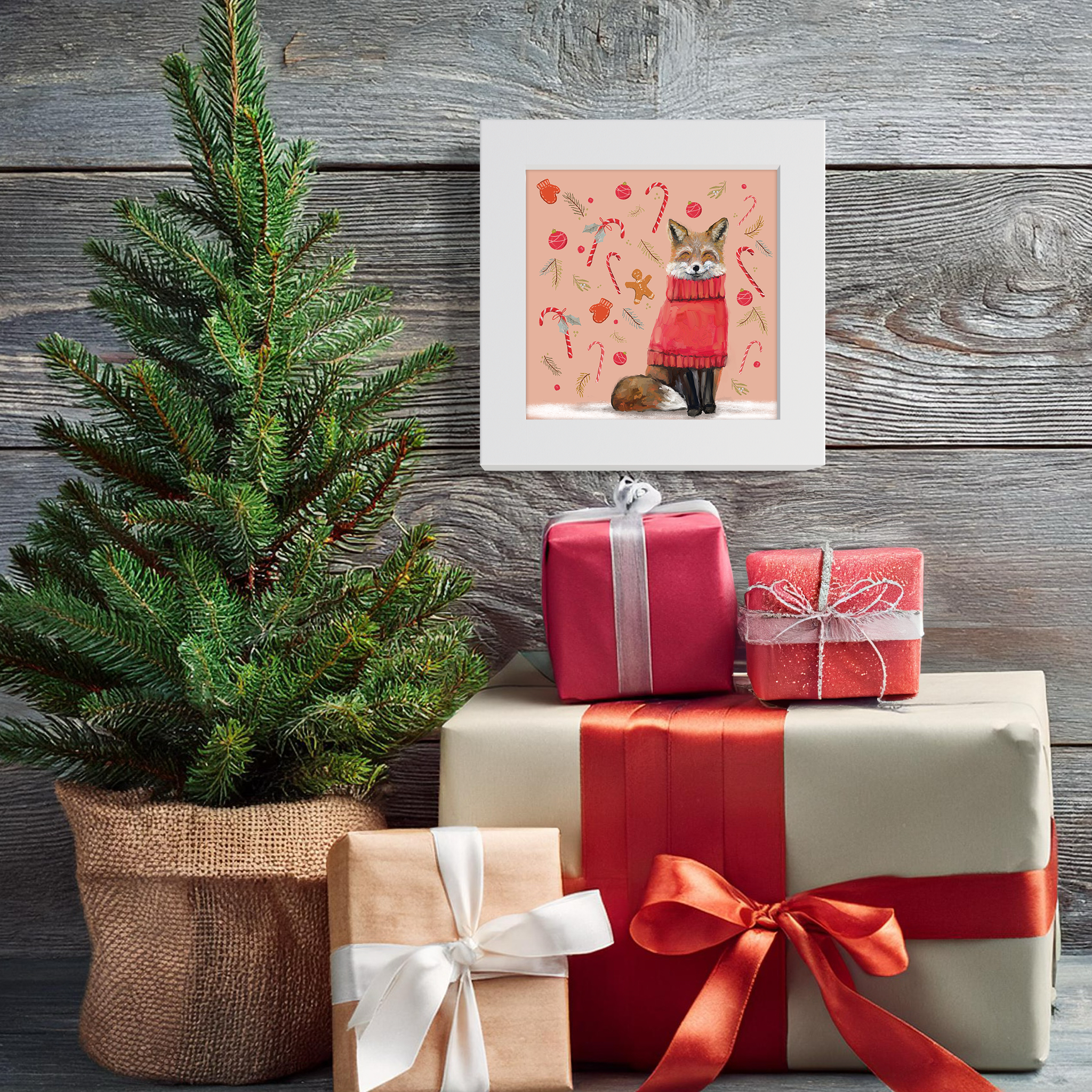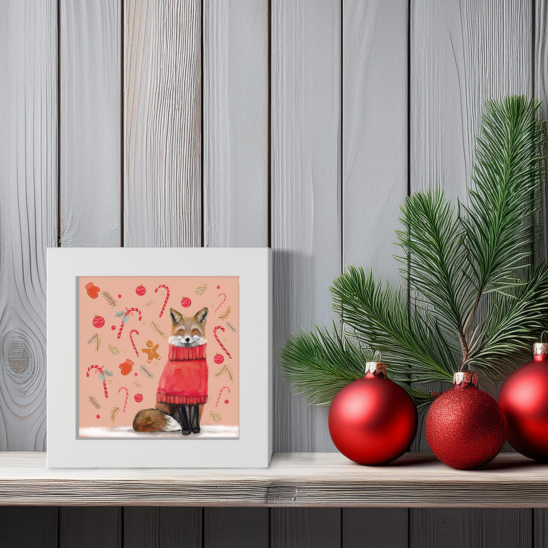 Just a little fox, wearing her favorite sweater, surrounded by Christmas treats.