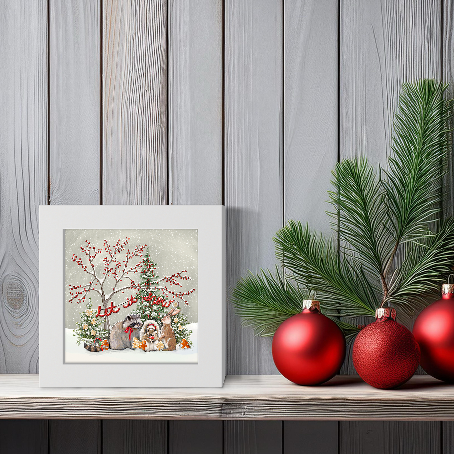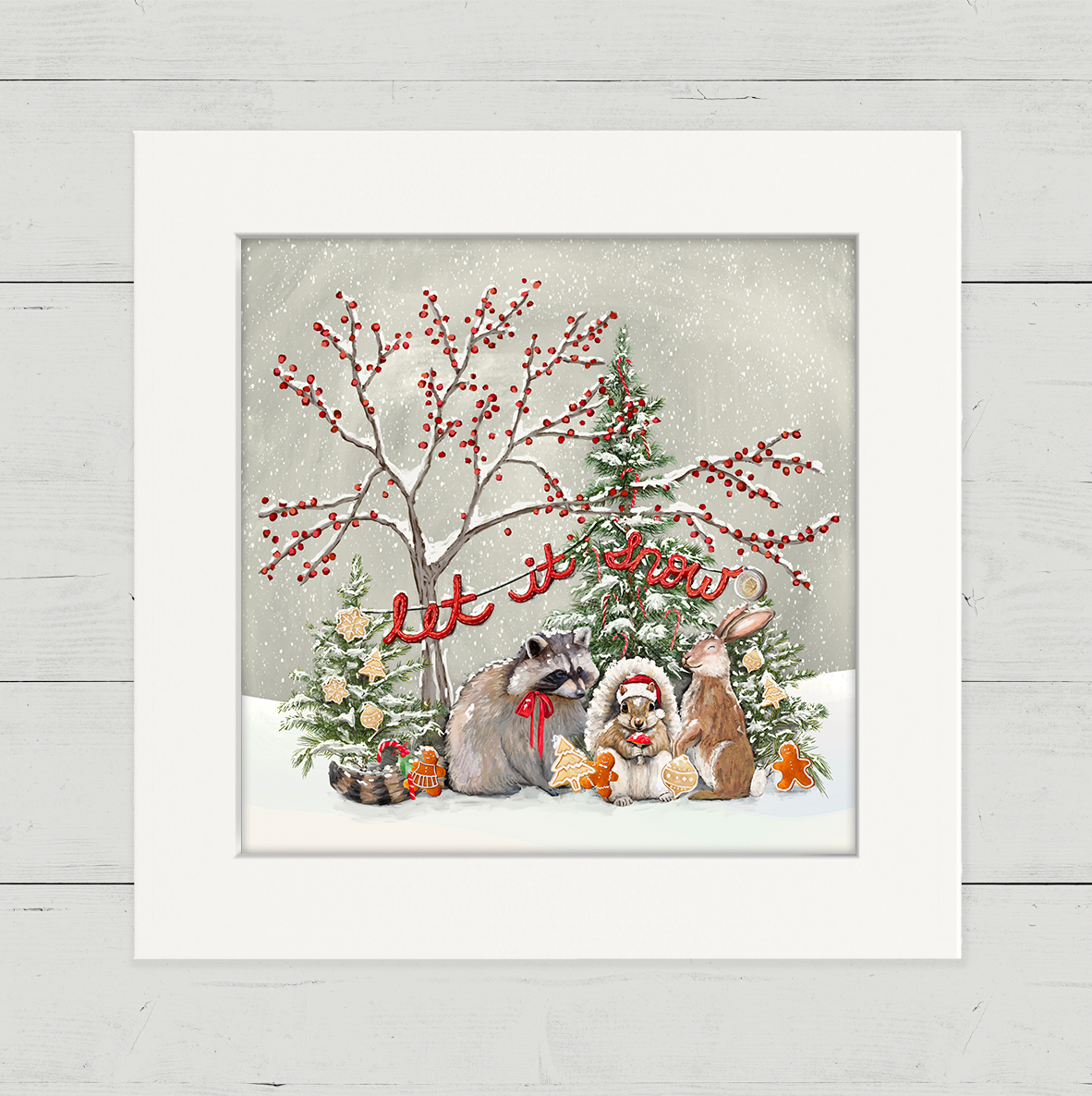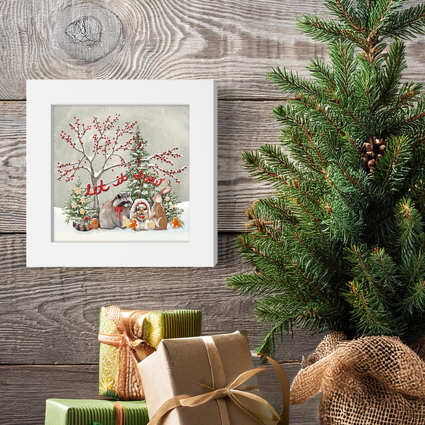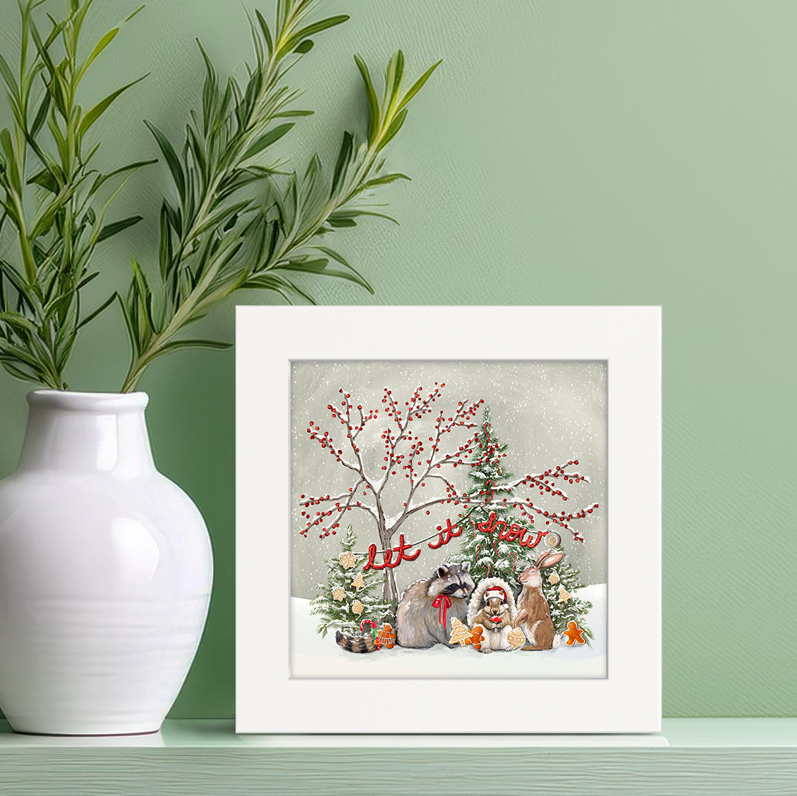 Gingerbread? Check. Christmas cookie ornaments? Check. A little snow and holiday spirit? Check! A party of woodland critters is all decorated for the holidays!