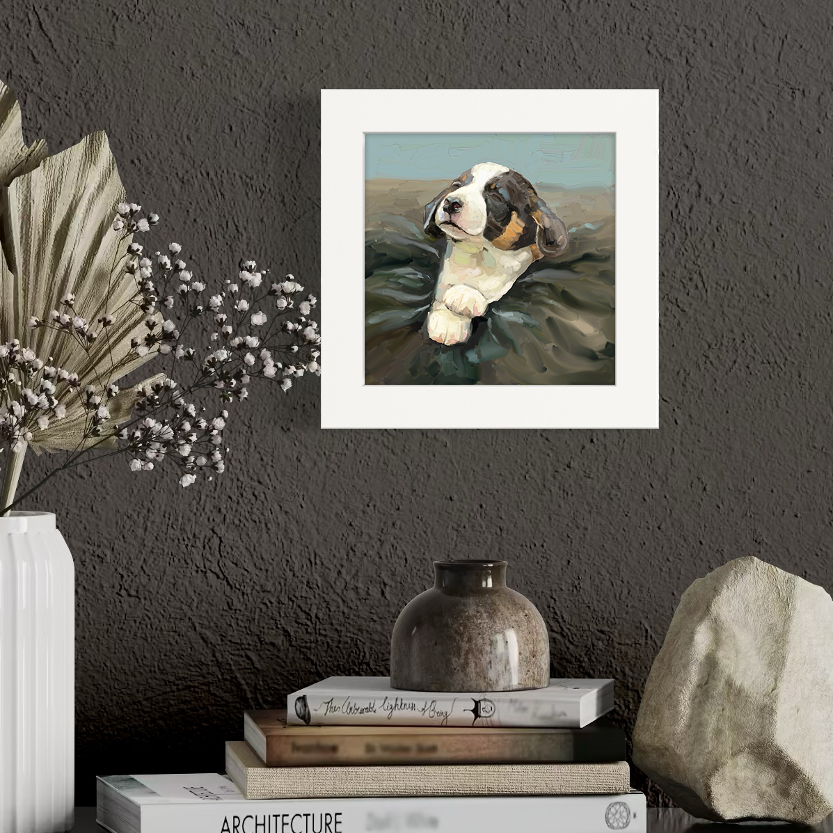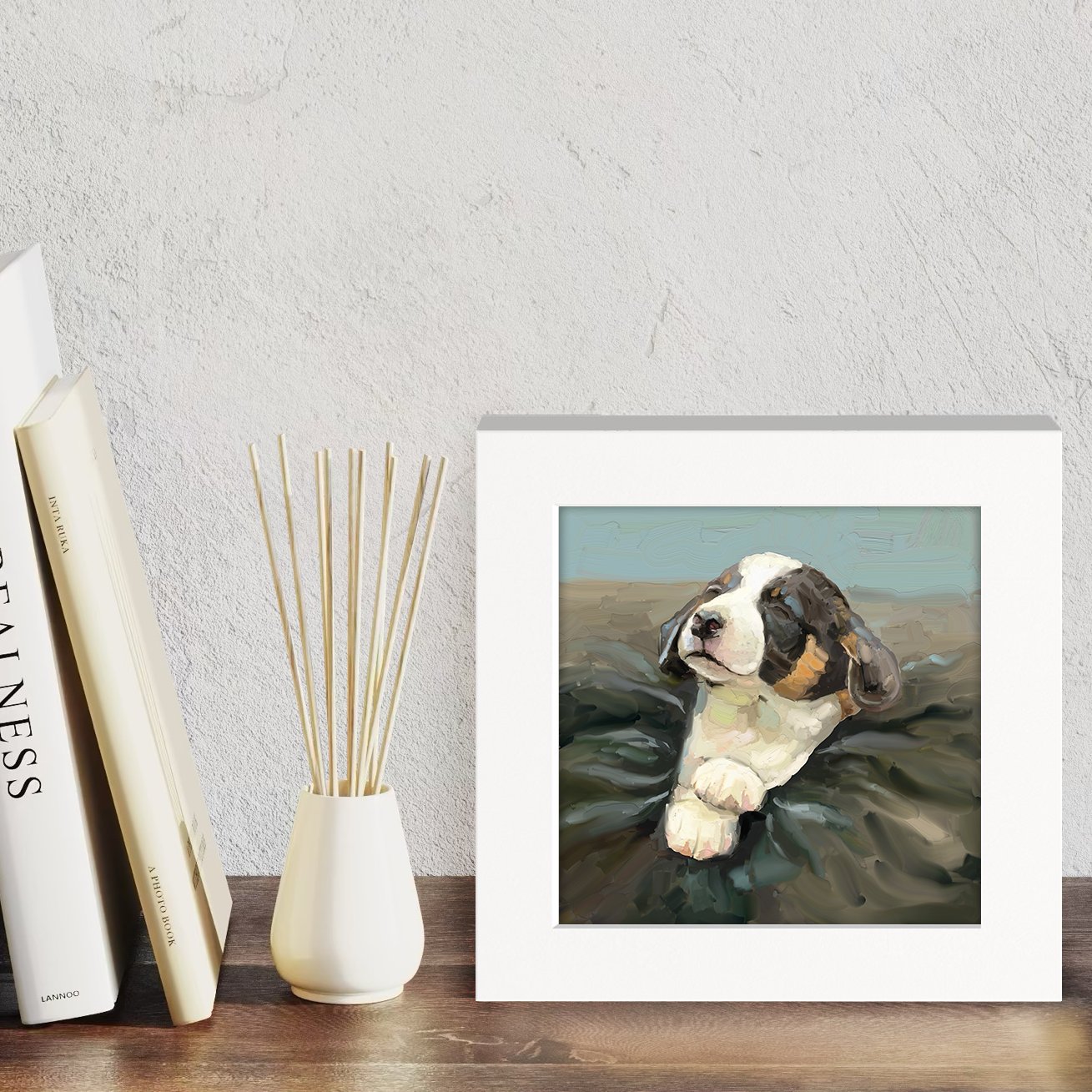 Materials: frame: painted wood. Artwork: thick textured canvas, printed with archival ink for lasting enjoyment.