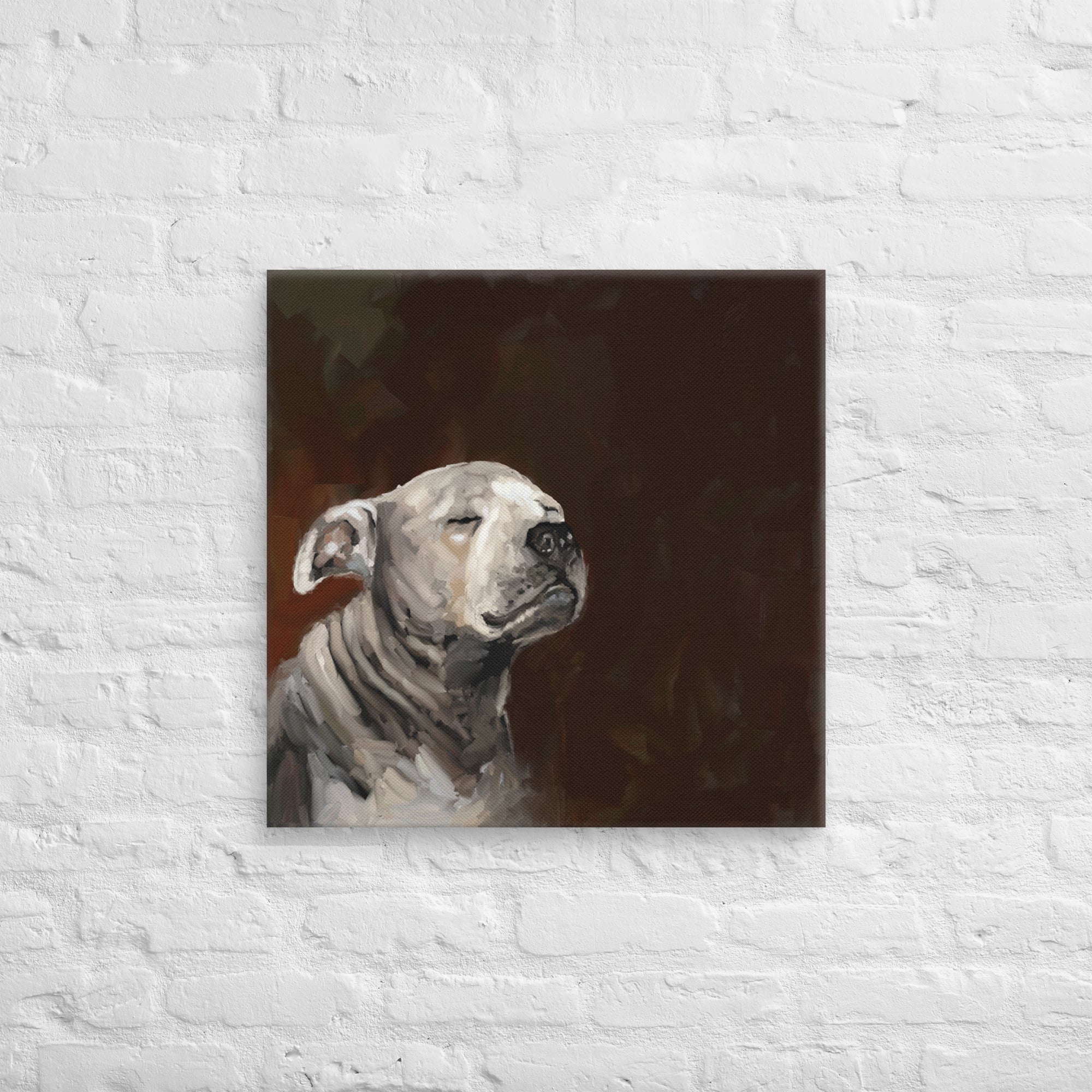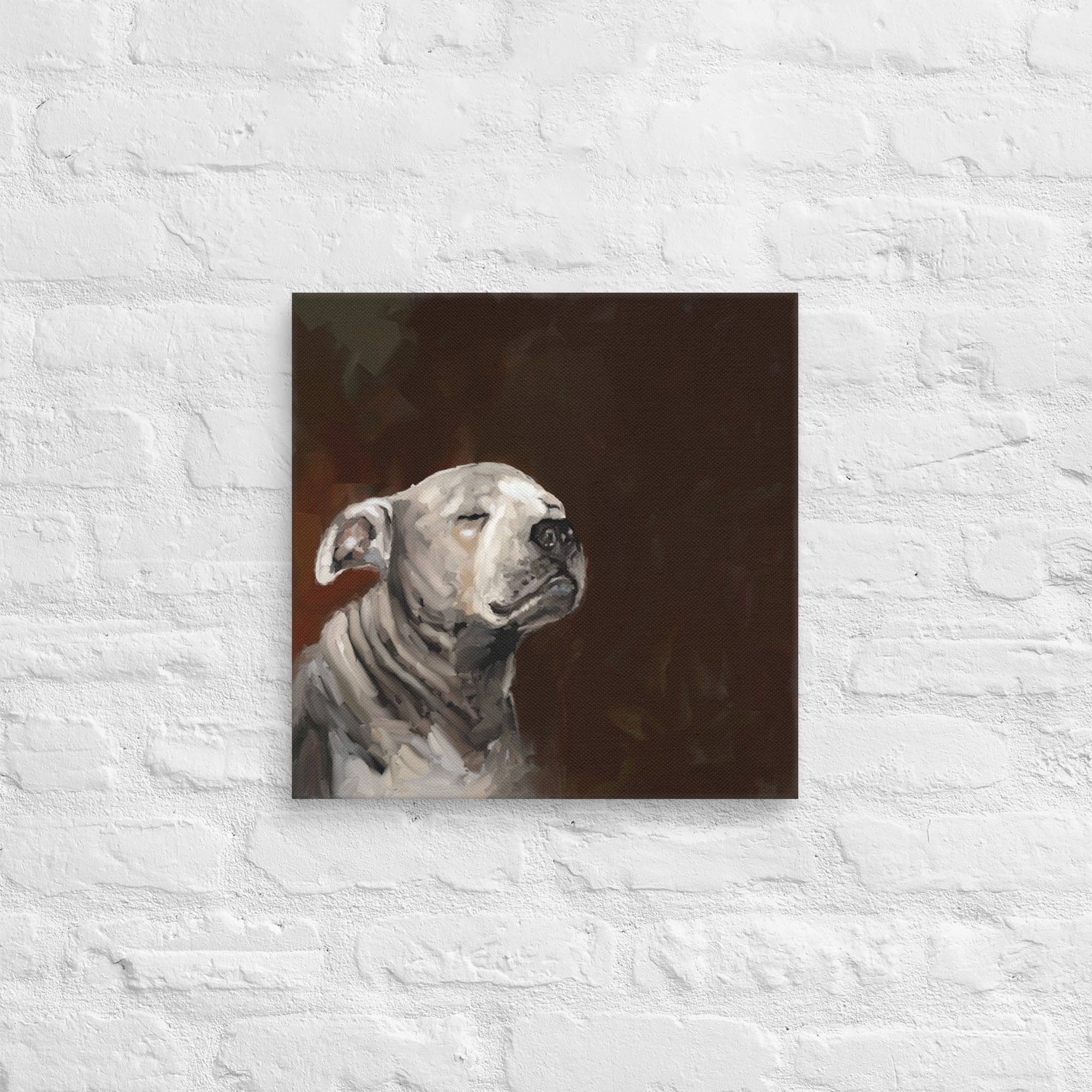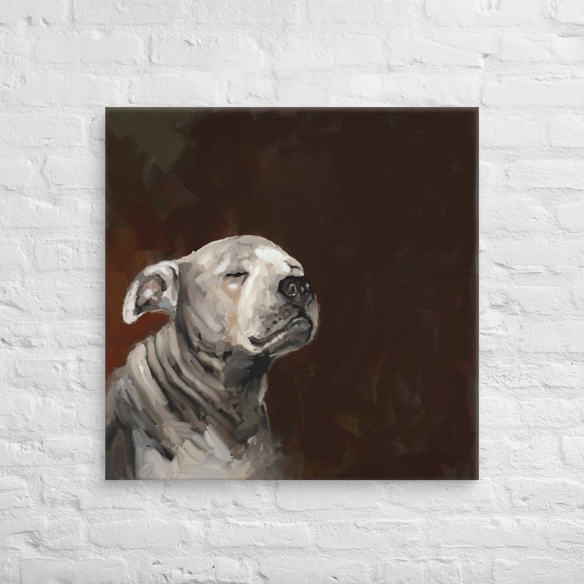 What a cutie! This pit bull is so relaxed, he's going to fall asleep standing up.