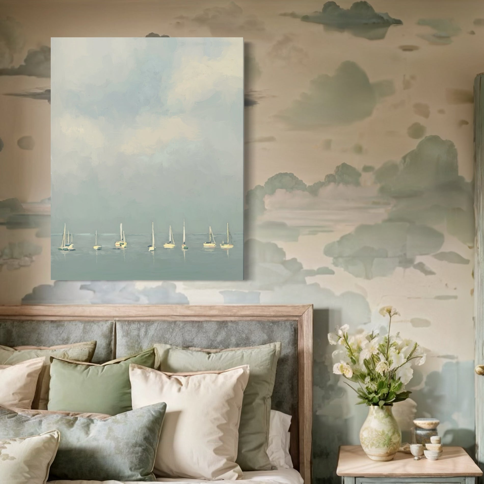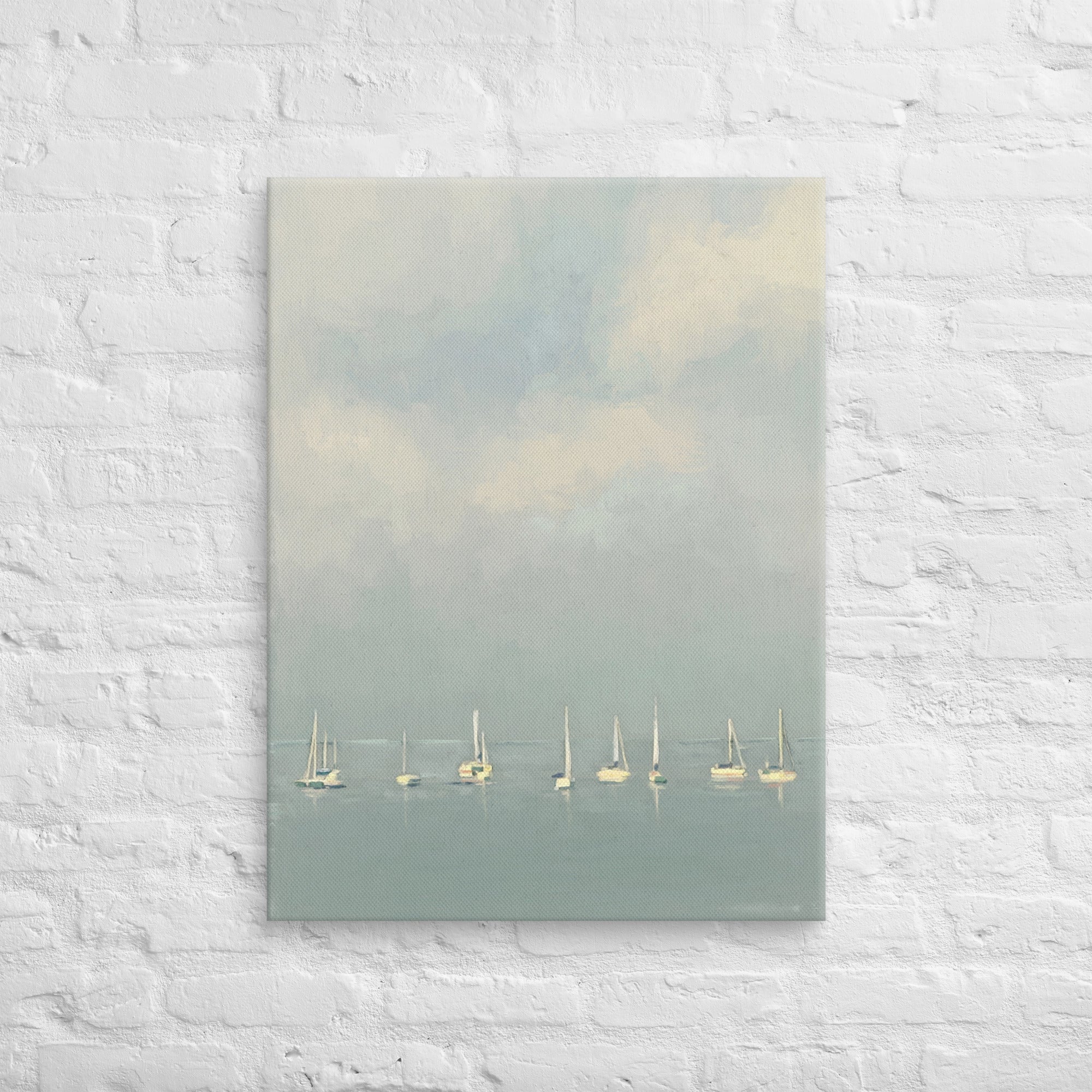 This painting is based on Cathy's view from her living room. It's always so exciting when the summer season begins and the boats are returned to the sea.
