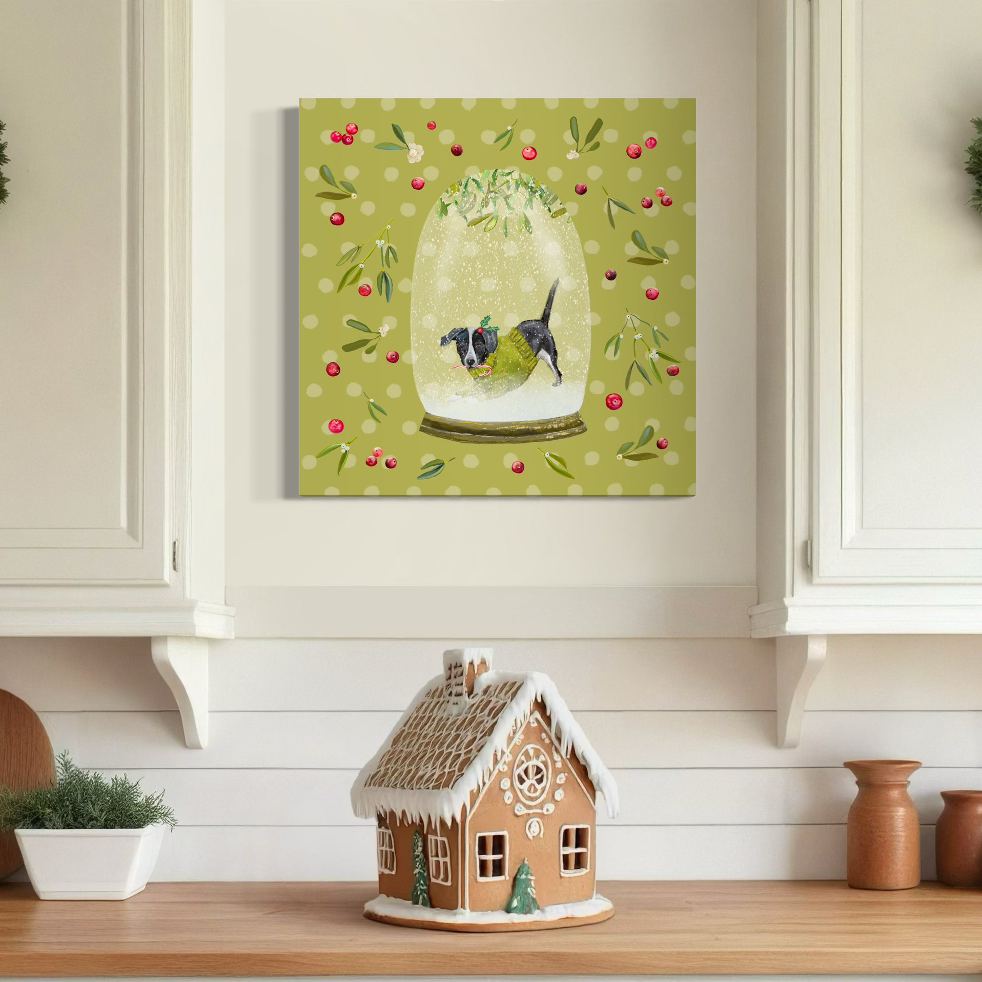 Part of Cathy's holiday snow globe collection, a playful pup waits for someone to play with her...and then it's snuggle time.