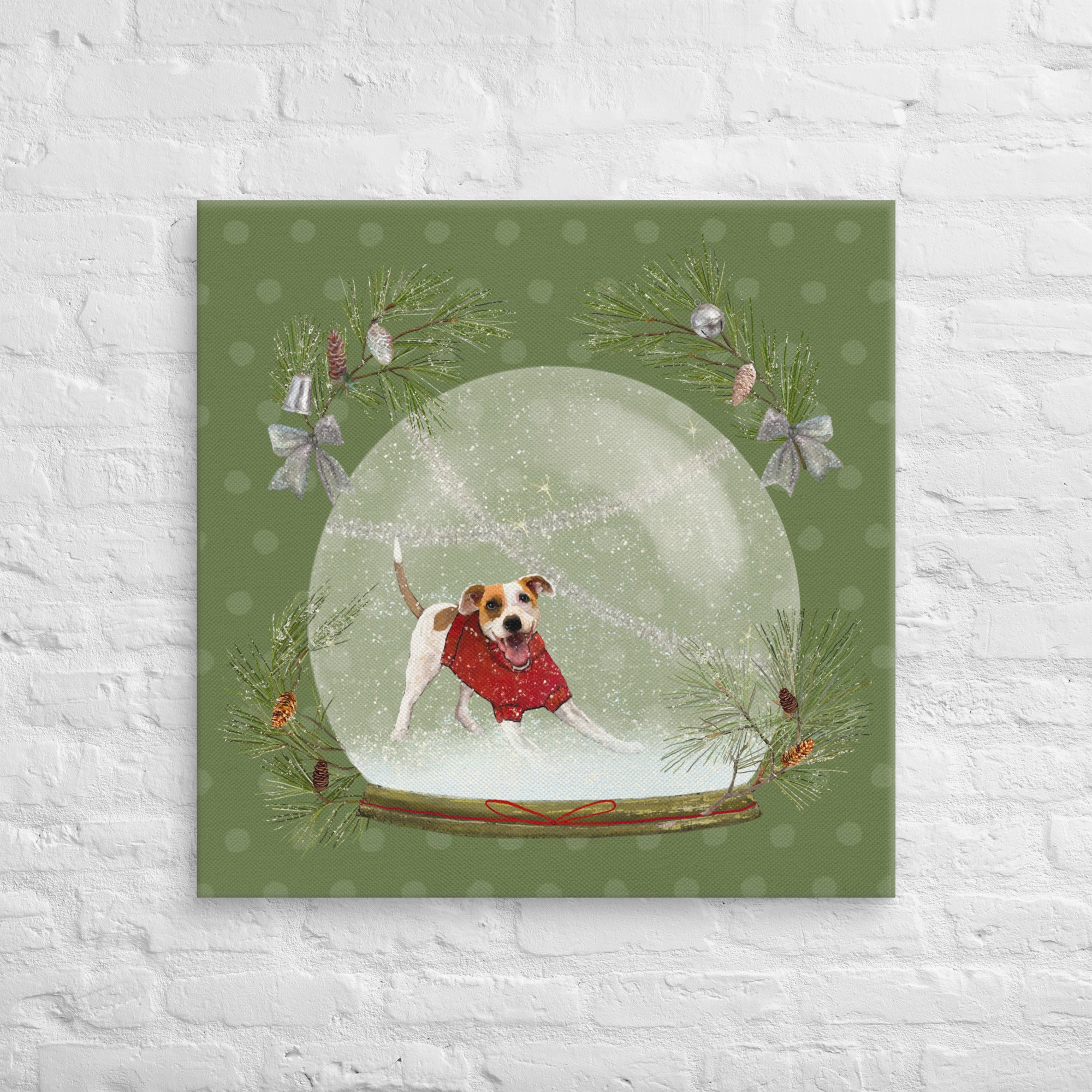 Part of Cathy's holiday snow globe collection, this pup is ready to play some reindeer games!